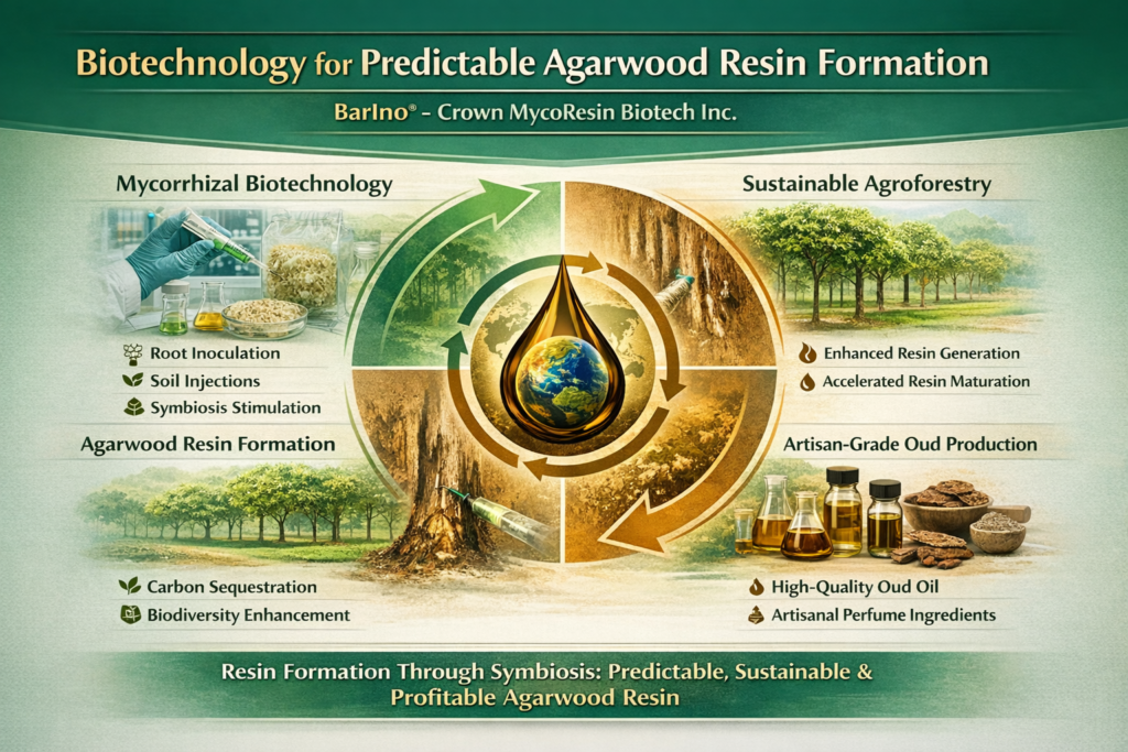Built on applied mycology, plant defense physiology, and multi-phase resin biosynthesis control, BarIno™ is not a single inoculant—it is a systematic induction platform engineered to guide Aquilaria trees through a controlled, traceable, and scalable resin-formation process.