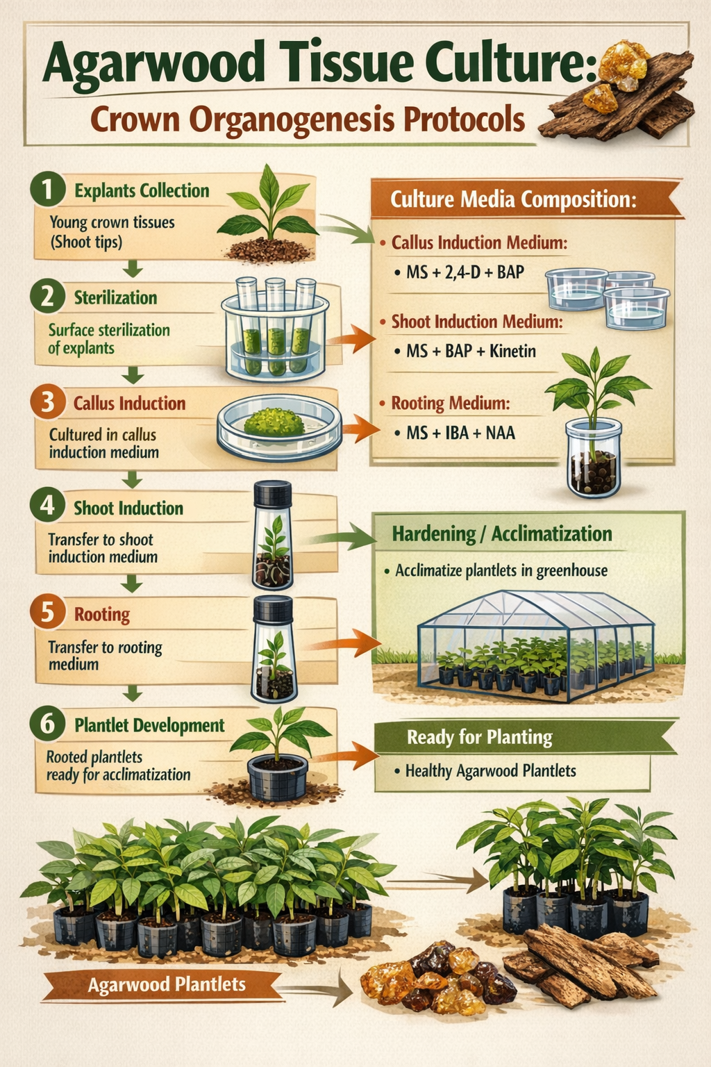 What Is Agarwood Tissue Culture? Agarwood tissue culture refers to in vitro propagation techniques used to multiply high-value Aquilaria species — the trees that produce agarwood — under controlled laboratory conditions. This typically involves: